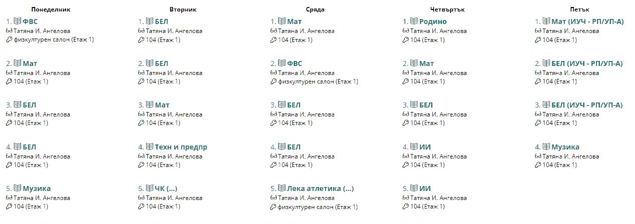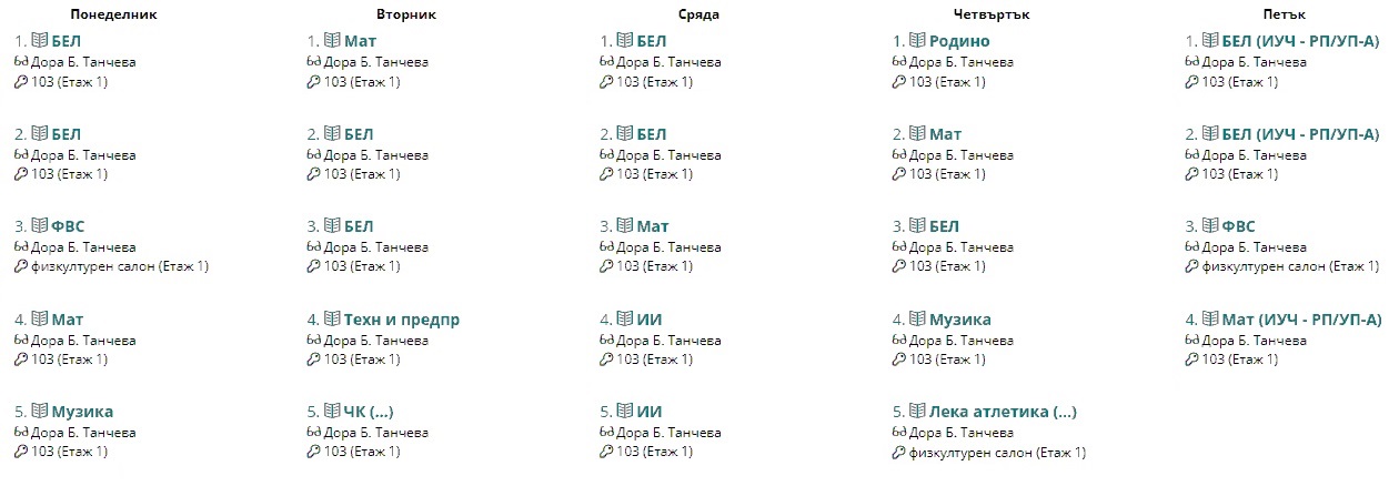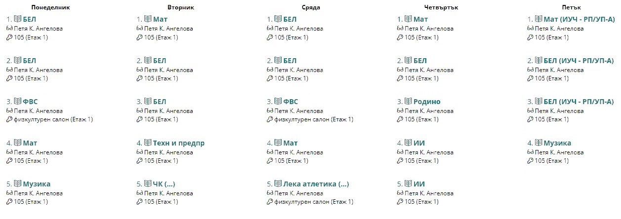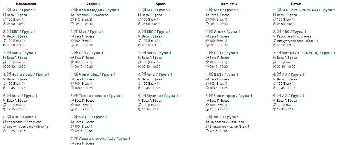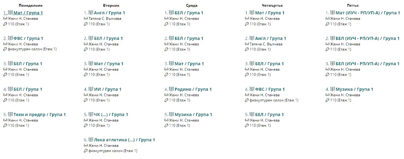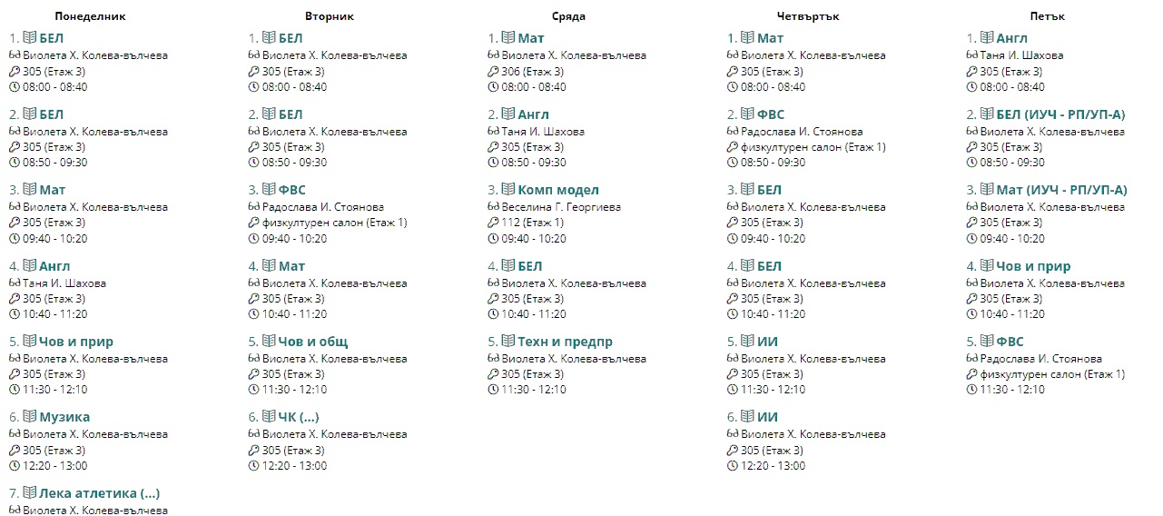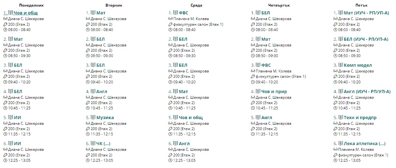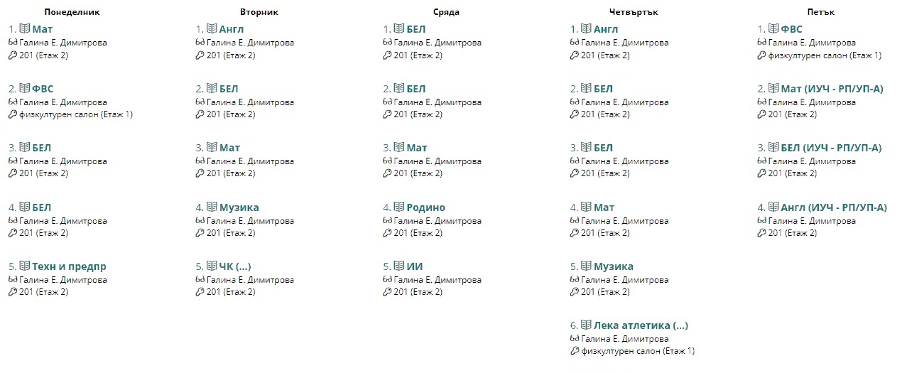 Седмично разписание