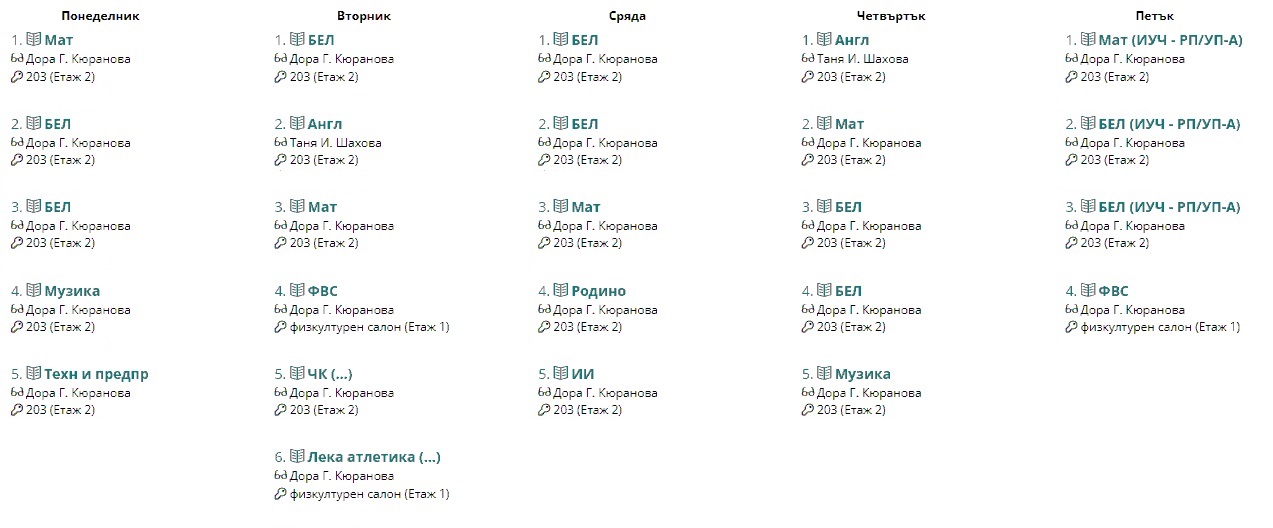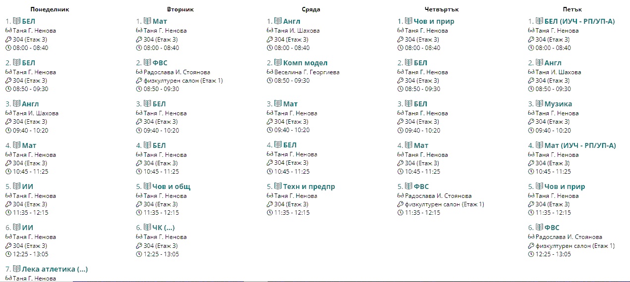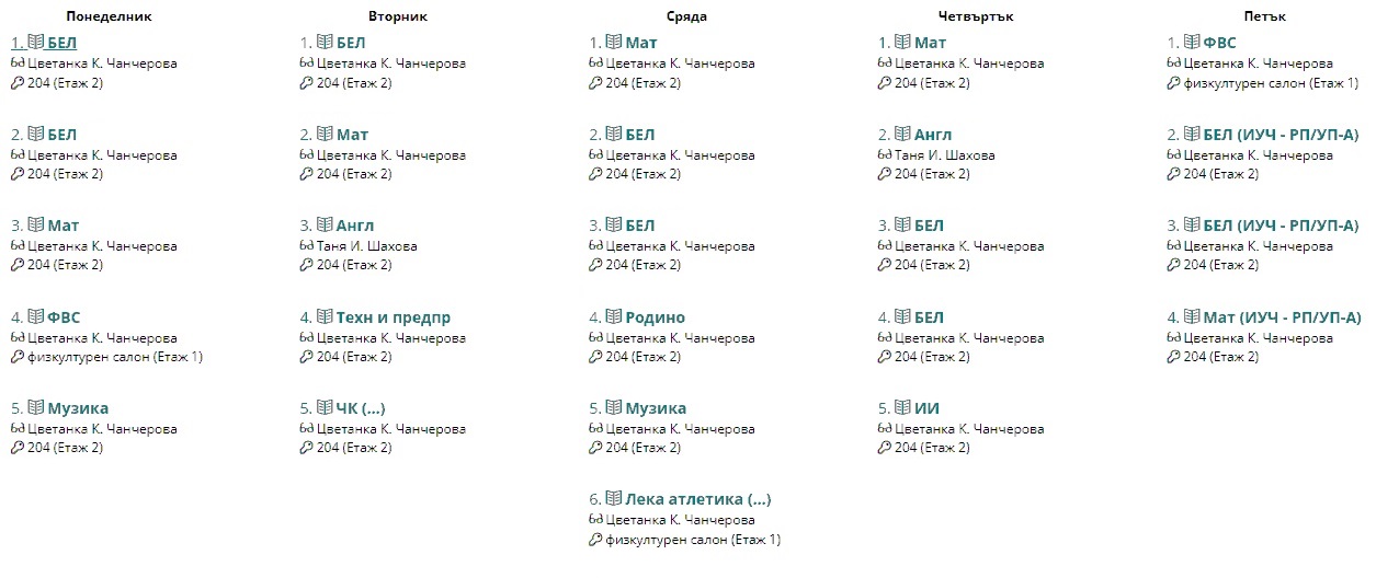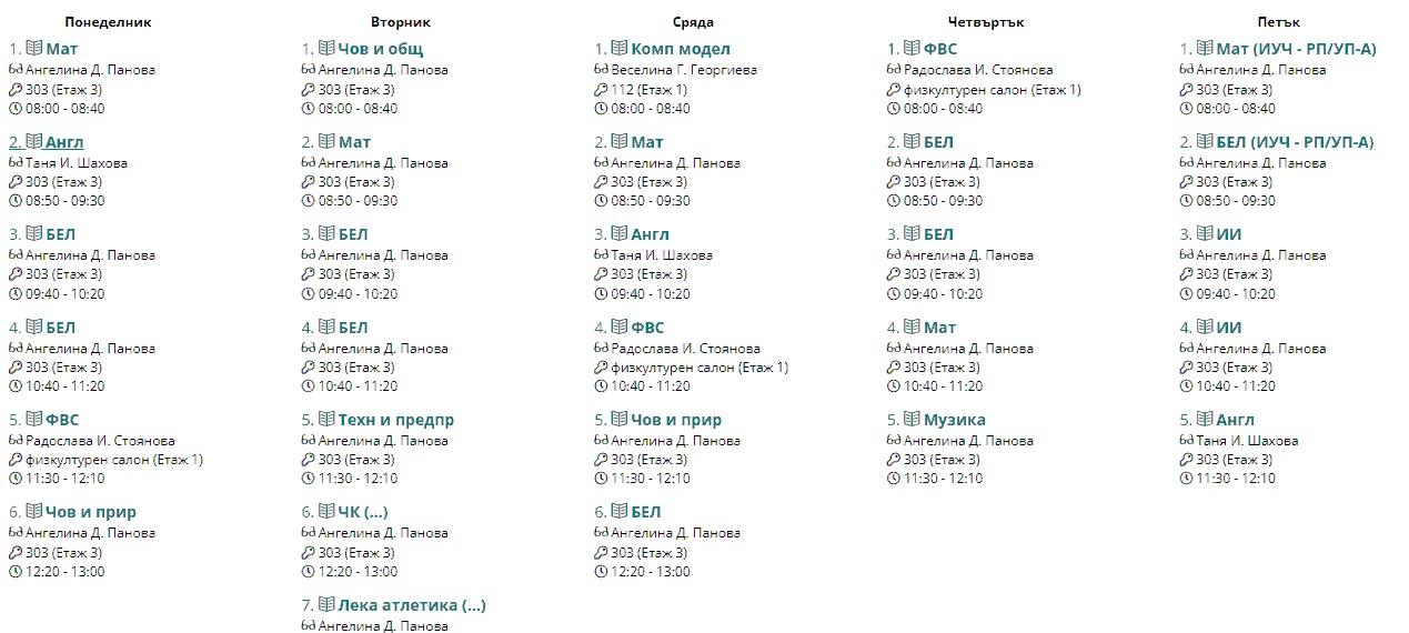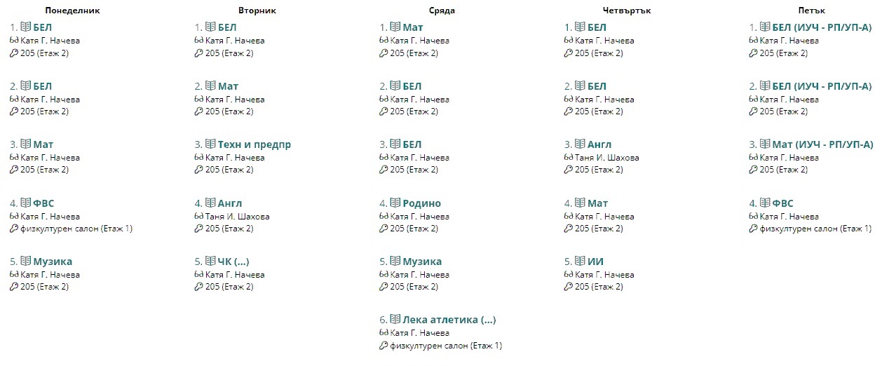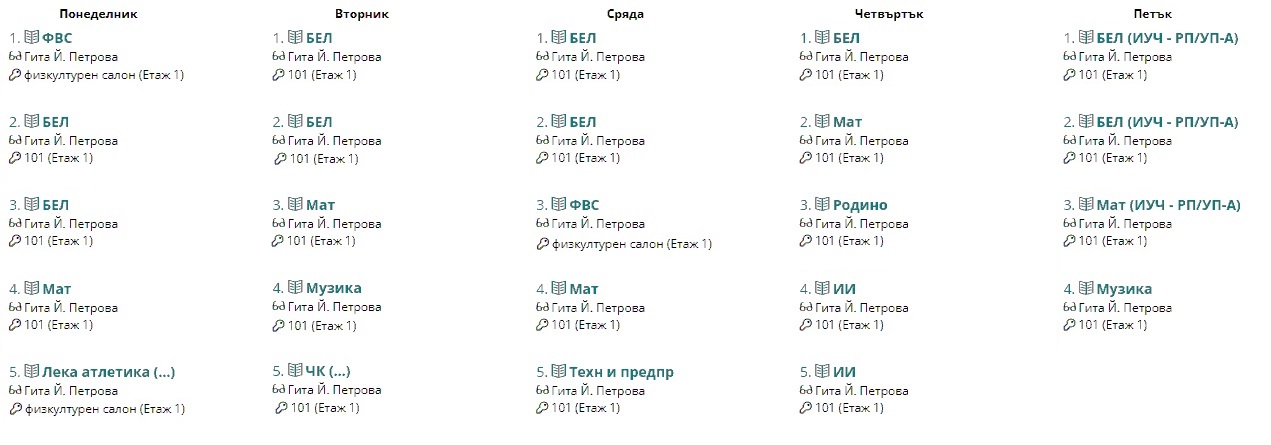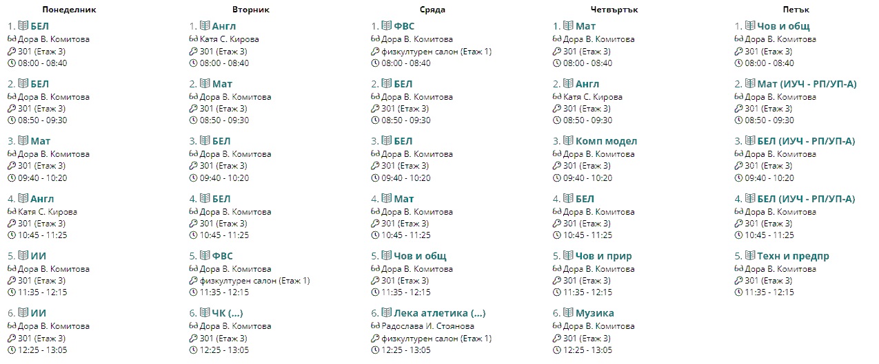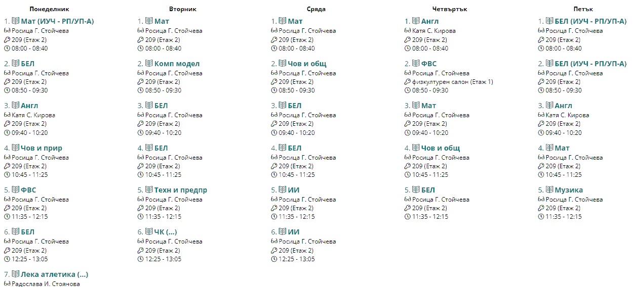 Седмично разписание
