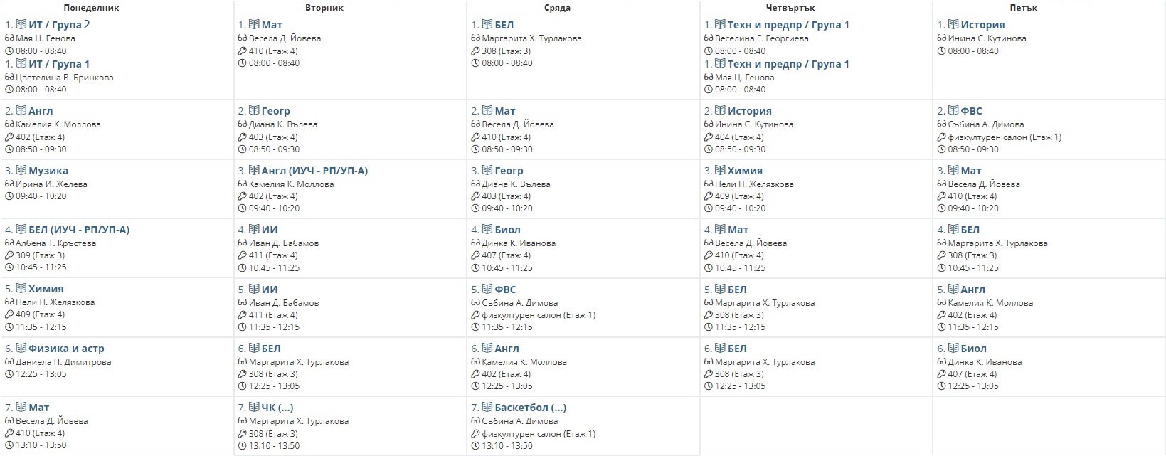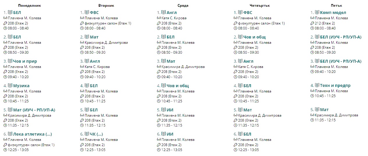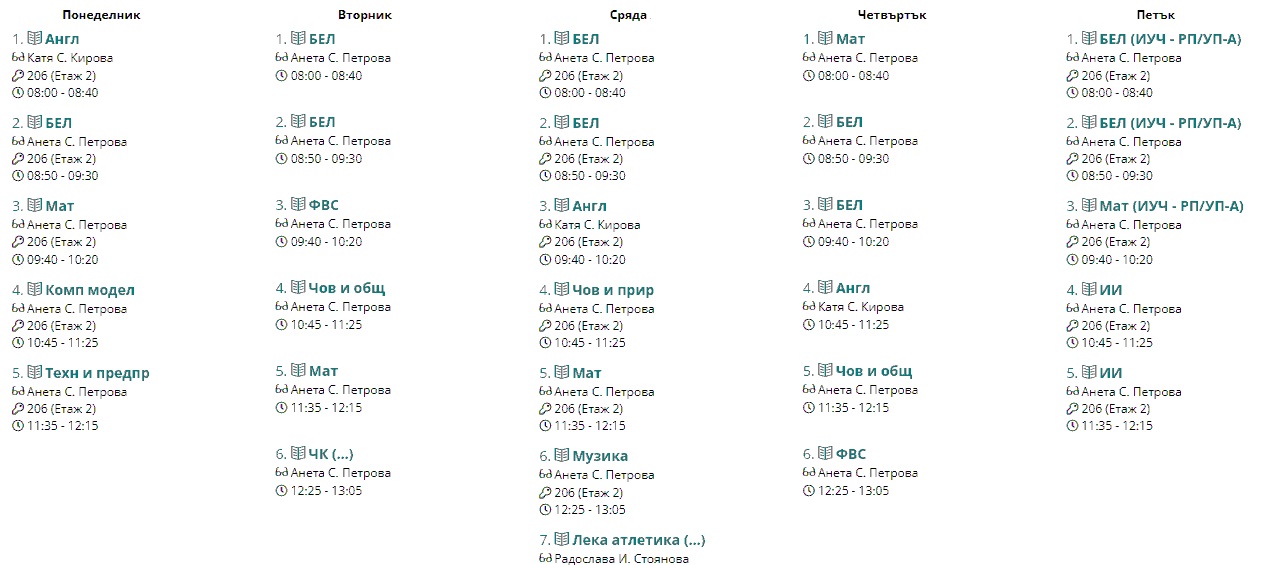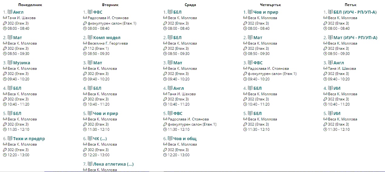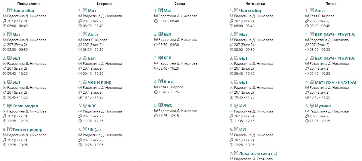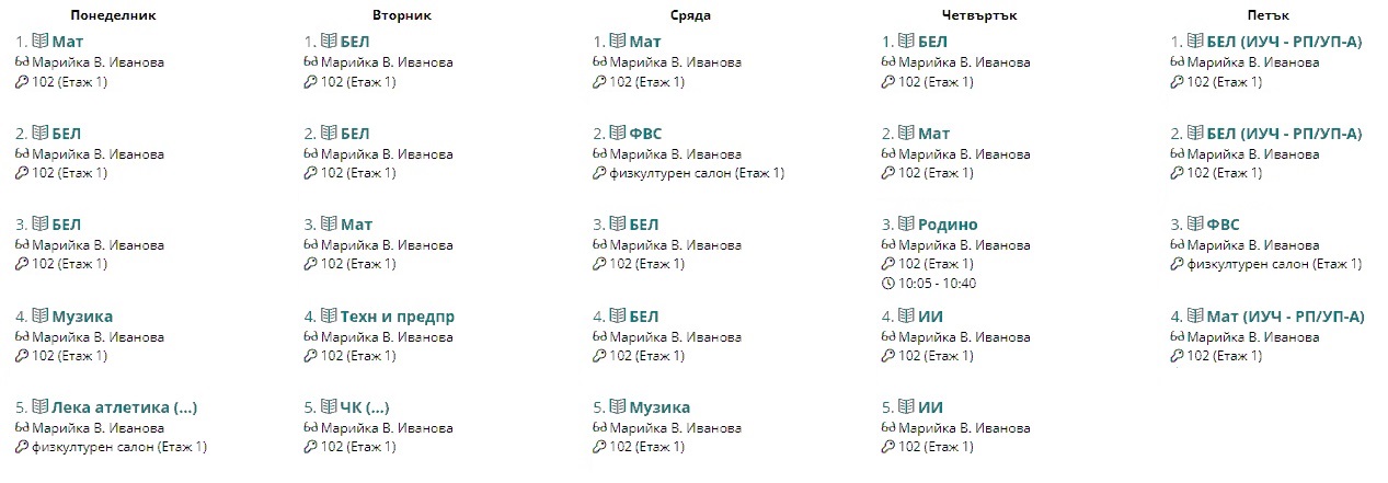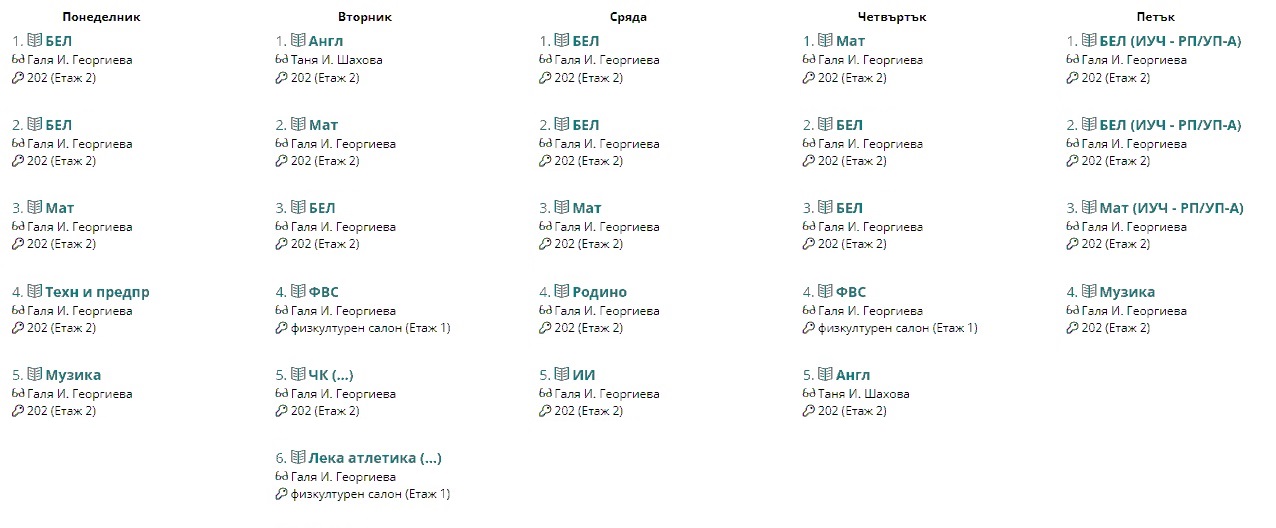 Седмично разписание