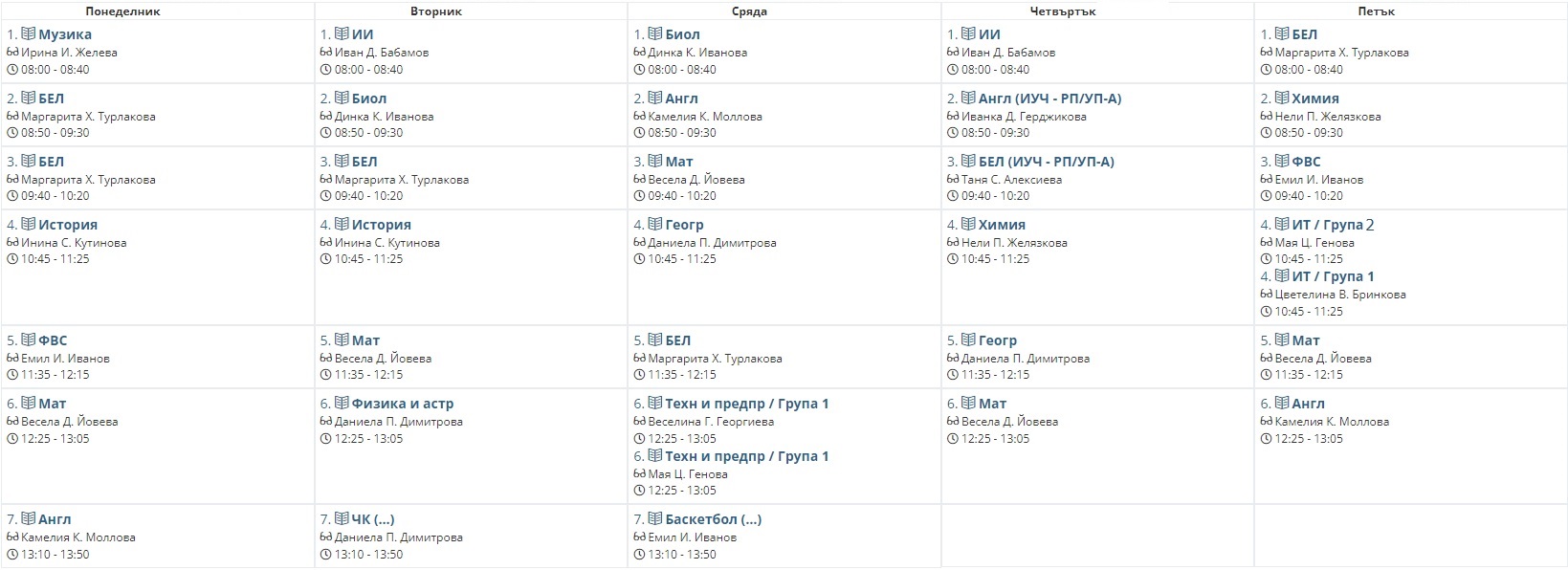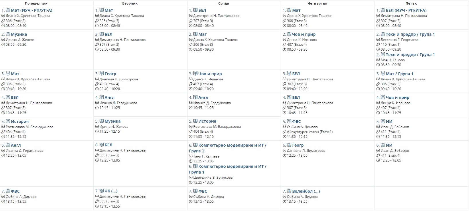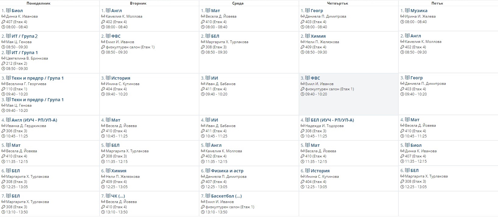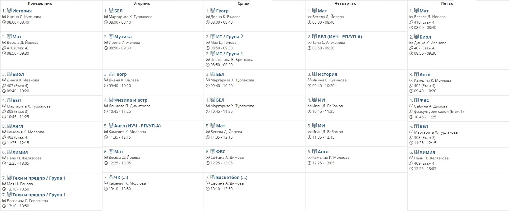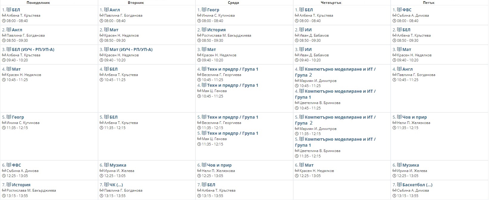 Седмично разписание