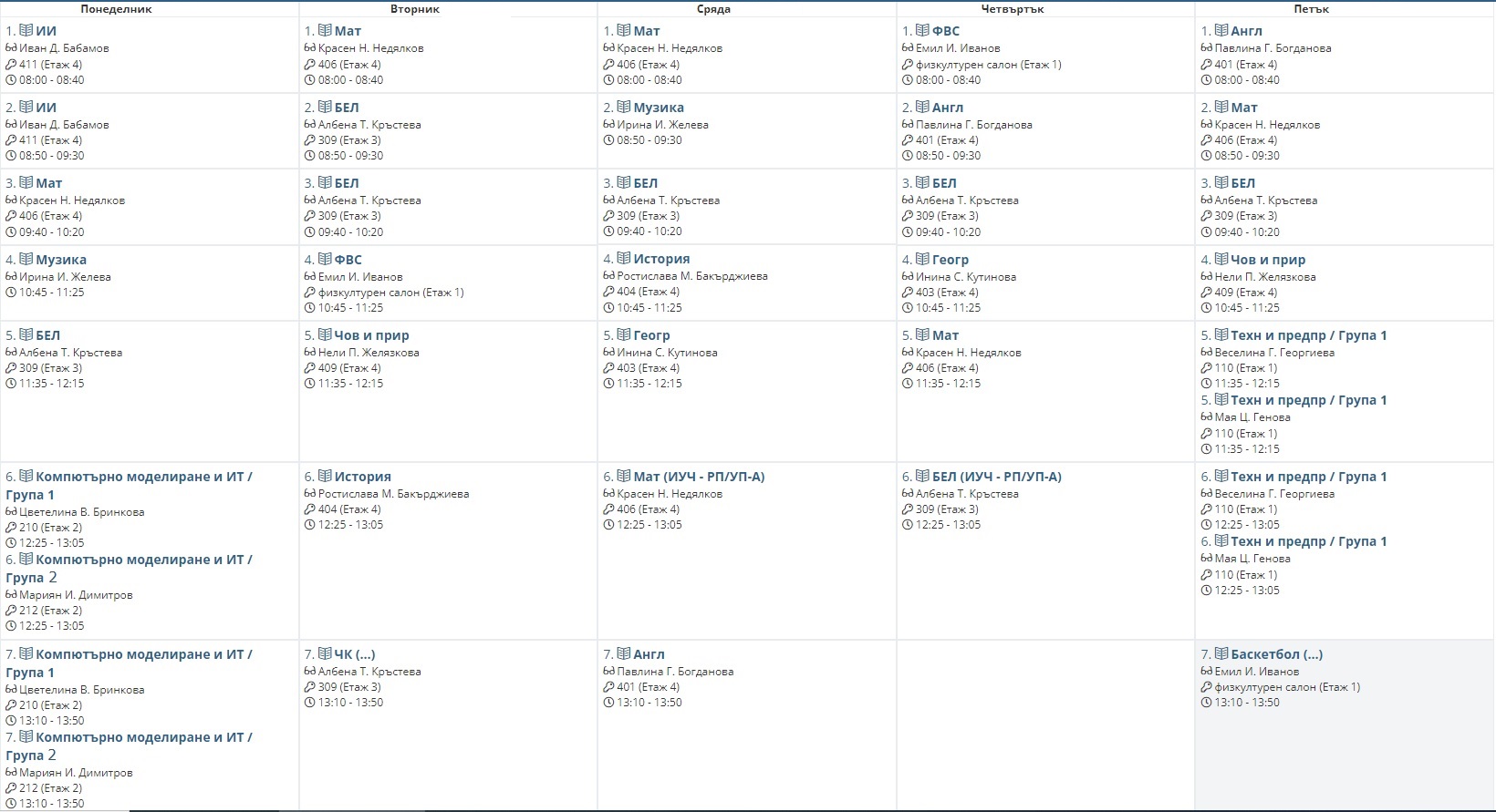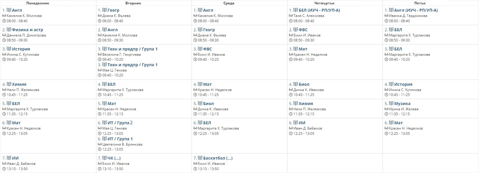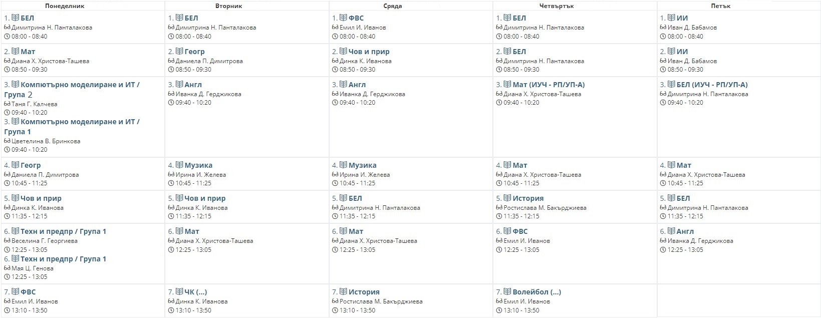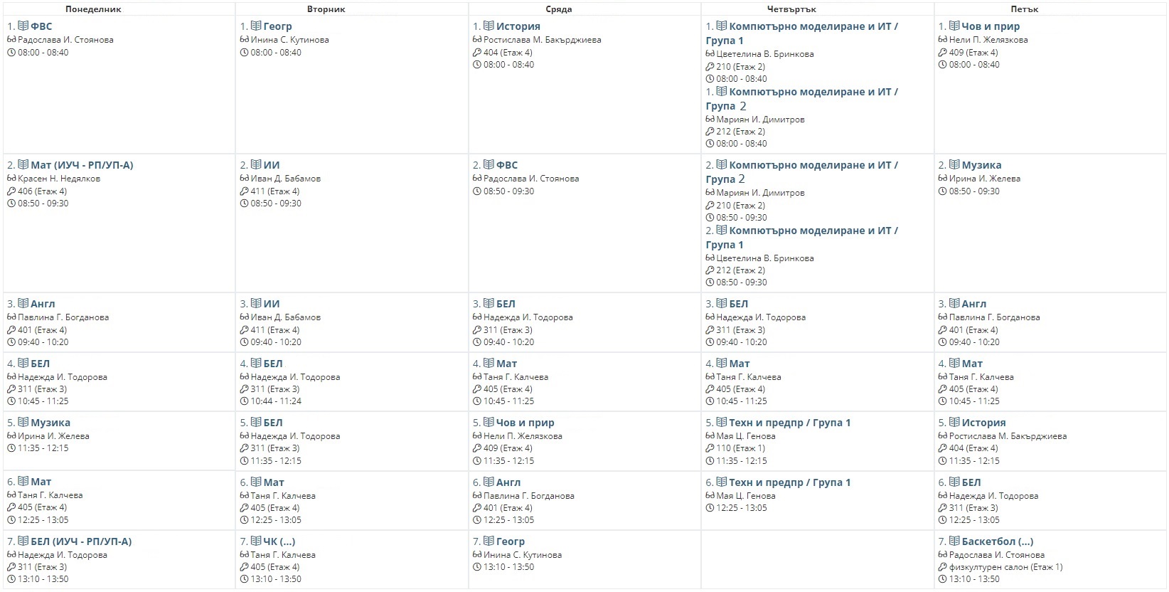 Седмично разписание
