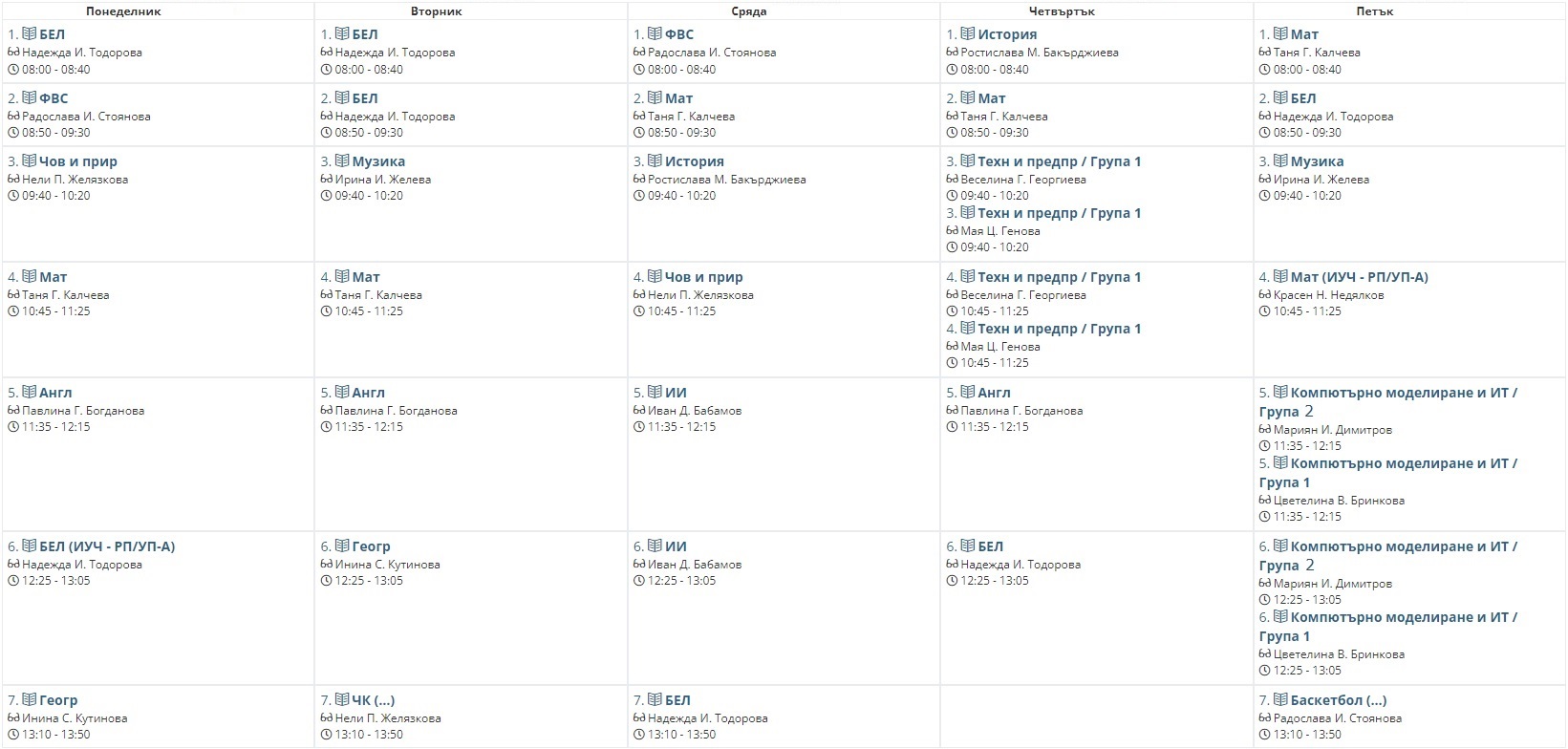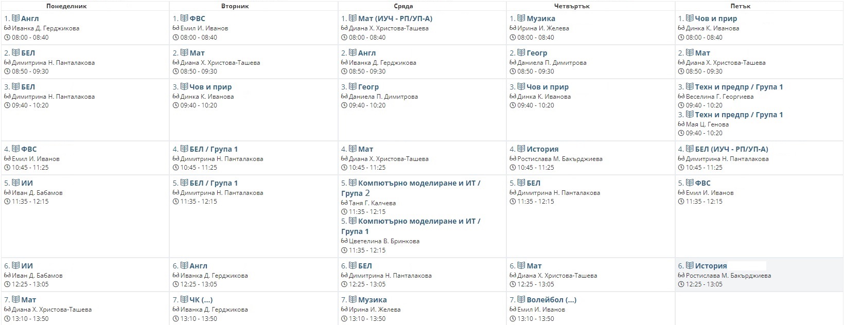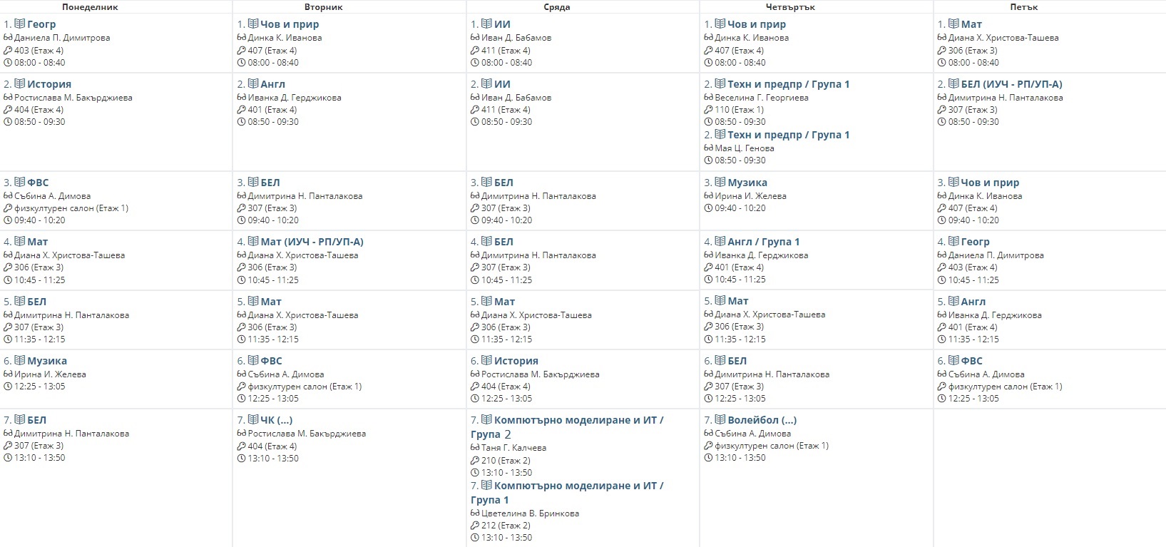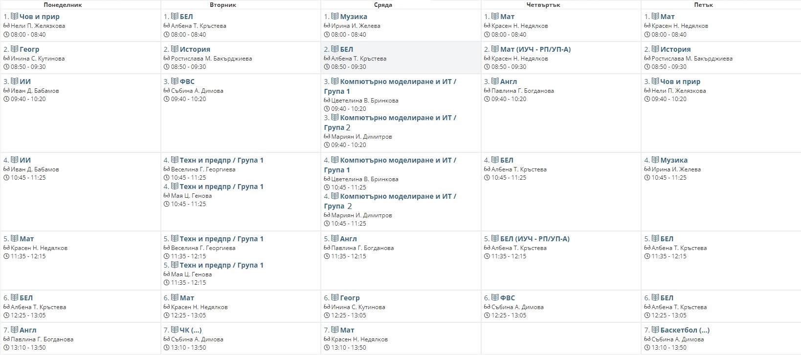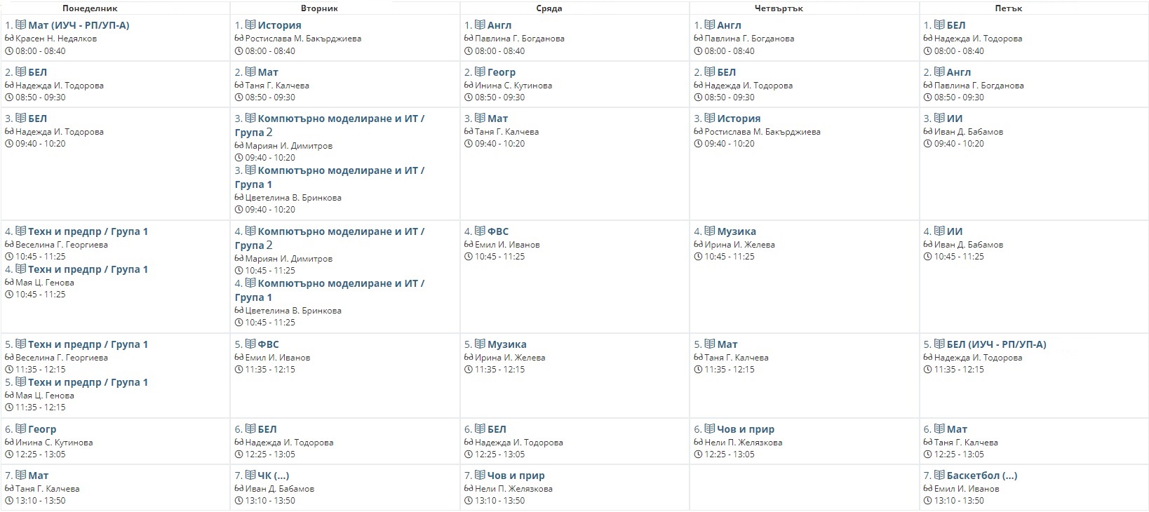 Седмично разписание